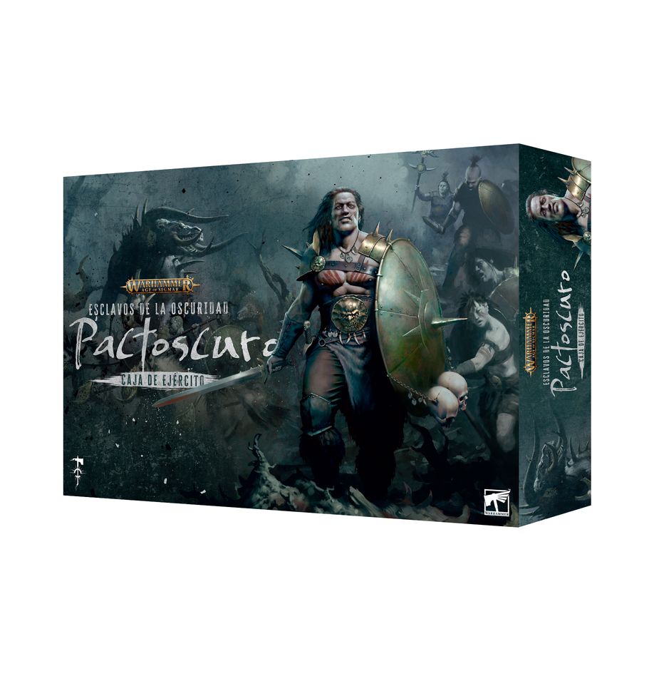 Desde las tierras salvajes de los Reinos Mortales, emerge la amenaza implacable de los Pactoscuro, parte de los temidos Esclavos de la Oscuridad. Este ejército de tribus humanas despiadadas está listo para cumplir sus juramentos de matanza y venganza bajo la mirada de sus dioses ruinosos. Cada victoria fortalece su legado de terror, mientras que el fracaso significa la pérdida de sus almas.