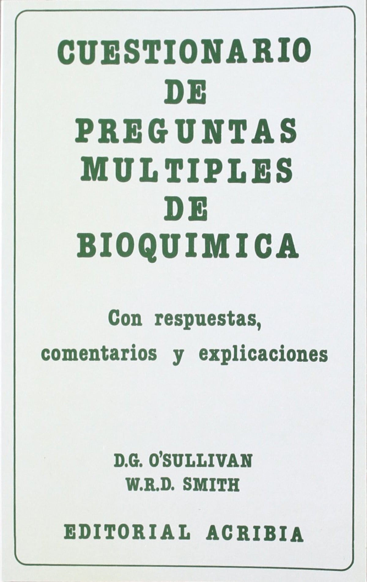 CUESTIONARIO DE PREGUNTAS MÚLTIPLES DE BIOQUÍMICA, escrita por OÆSullivan, D. G./Smith, W. R. D. y publicada por ACRIBIA en 1982, es una obra esencial para entender los principios bioquímicos que sustentan la medicina moderna. Esta edición actualizada integra los últimos avances en biología molecular, genética y fisiopatología, ofreciendo una visión clara y accesible de los procesos bioquímicos fundamentales que afectan a la salud humana. Gracias a su enfoque didáctico y clínico, este libro se ha convertido en una referencia indispensable tanto para estudiantes como para profesionales de las ciencias de la salud.